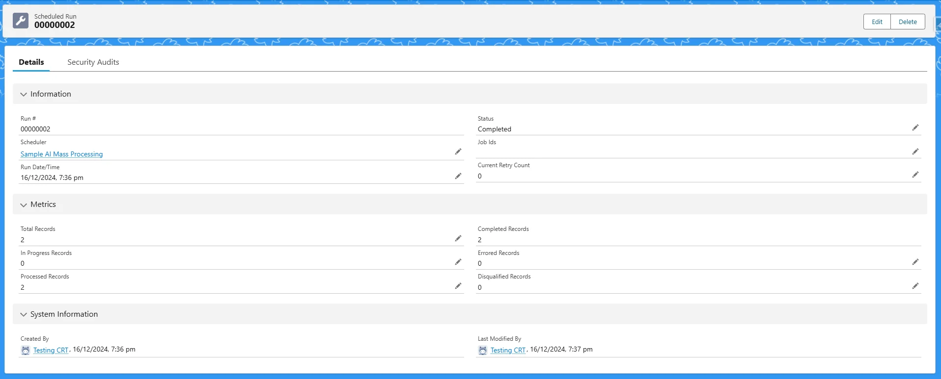 - Navigate to the AI Mass Processing record you created