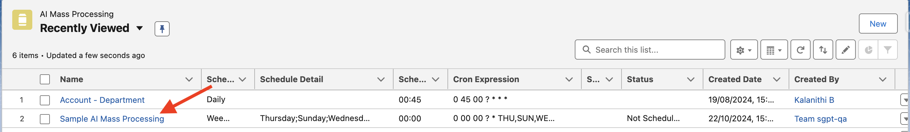 - Click New to add a prompt scheduler under your AI Mass Processing record.