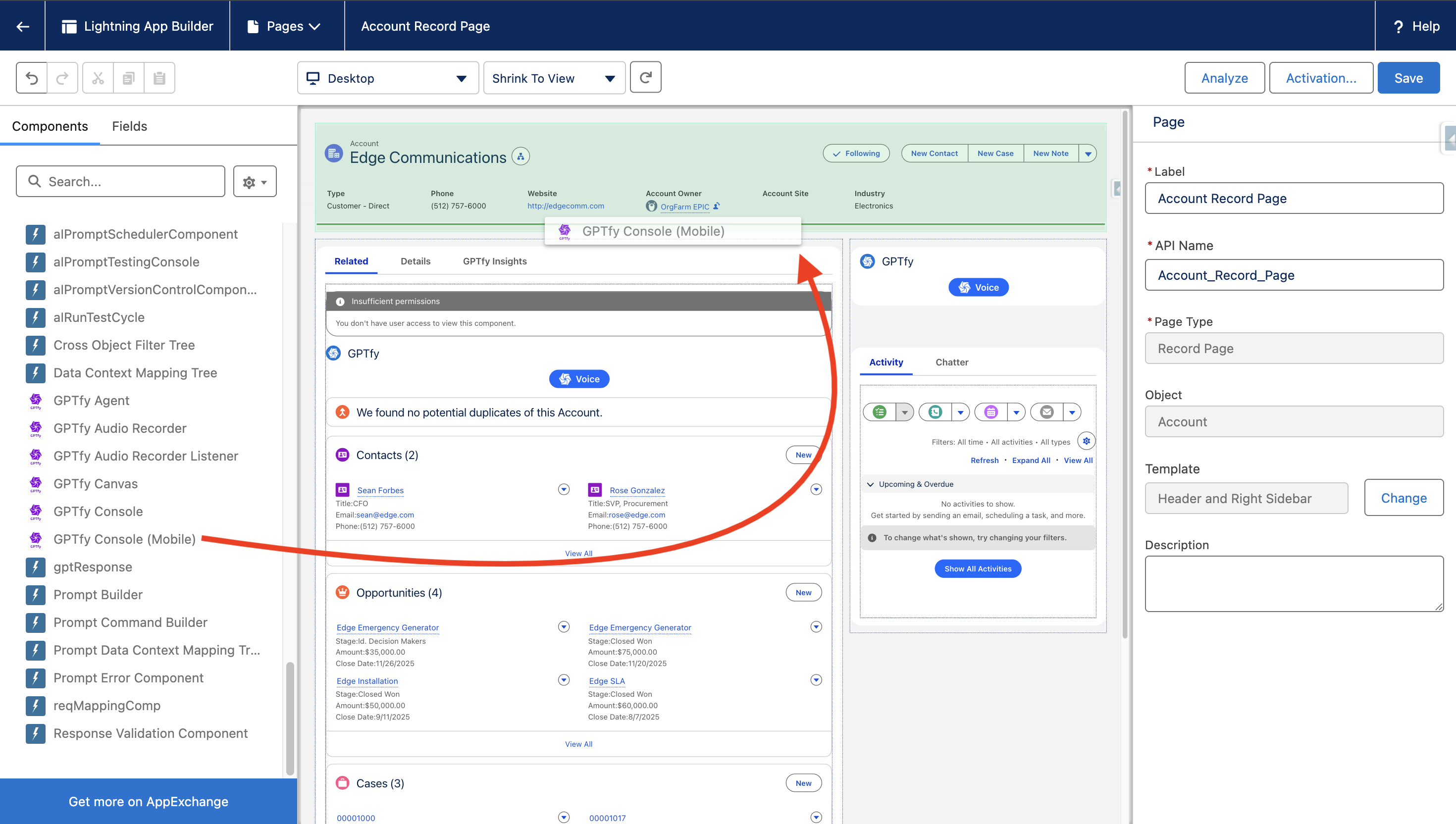 - Drag and drop the “GPTfy Console (Mobile)” onto the details section of the page.