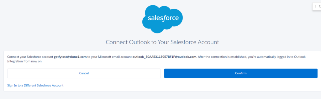 - Log in to the Outlook plugin and connect with the Salesforce organization.