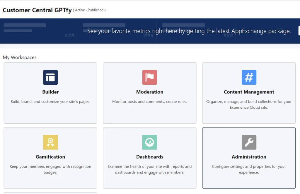 - Once the site is published, log in to Experience Cloud as a user whose profile has been assigned with the GPTfy Portal User permission set.