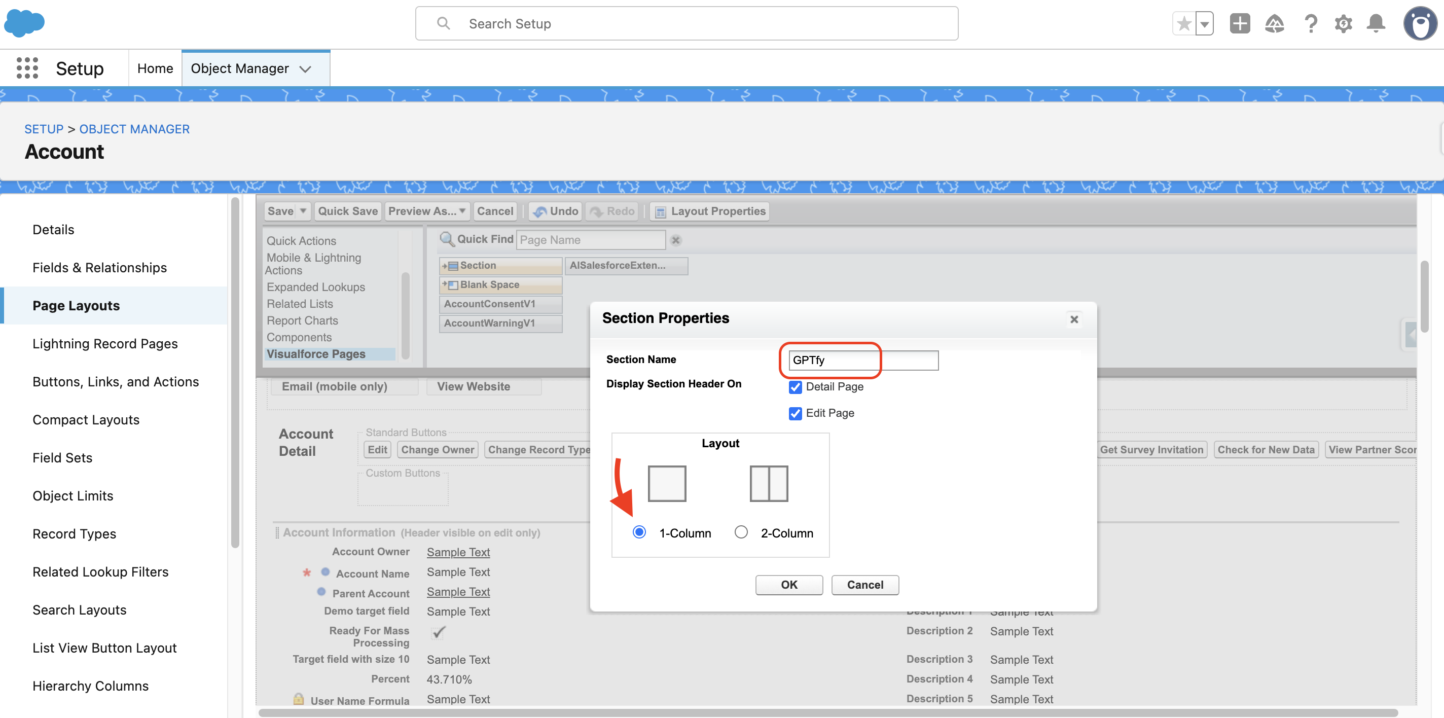 Step 4: Add ‘AISalesforceExtensionAccountVF’ Visualforce page to account layout