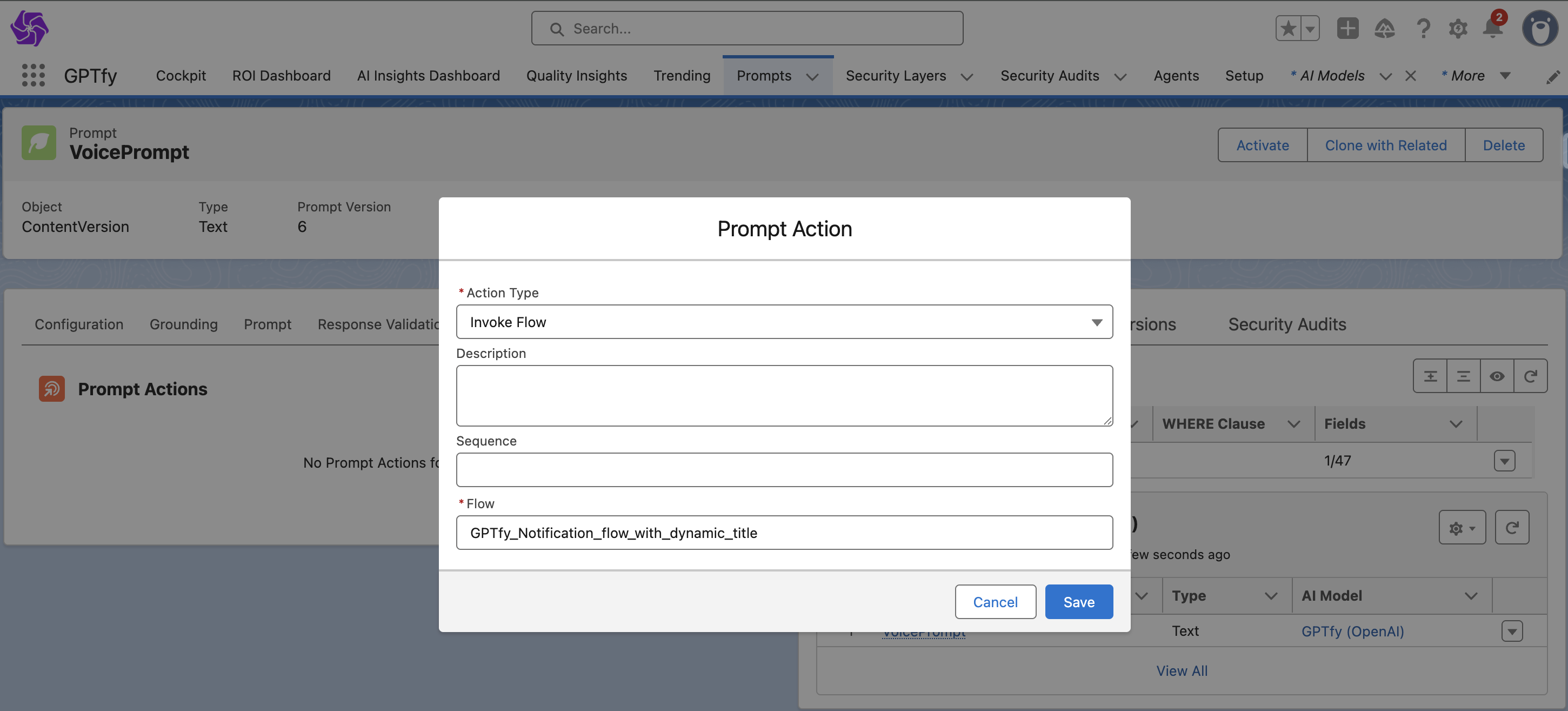Invoke Flowin Prompt Actions, with a flow namedGPTfy Notification Flow.