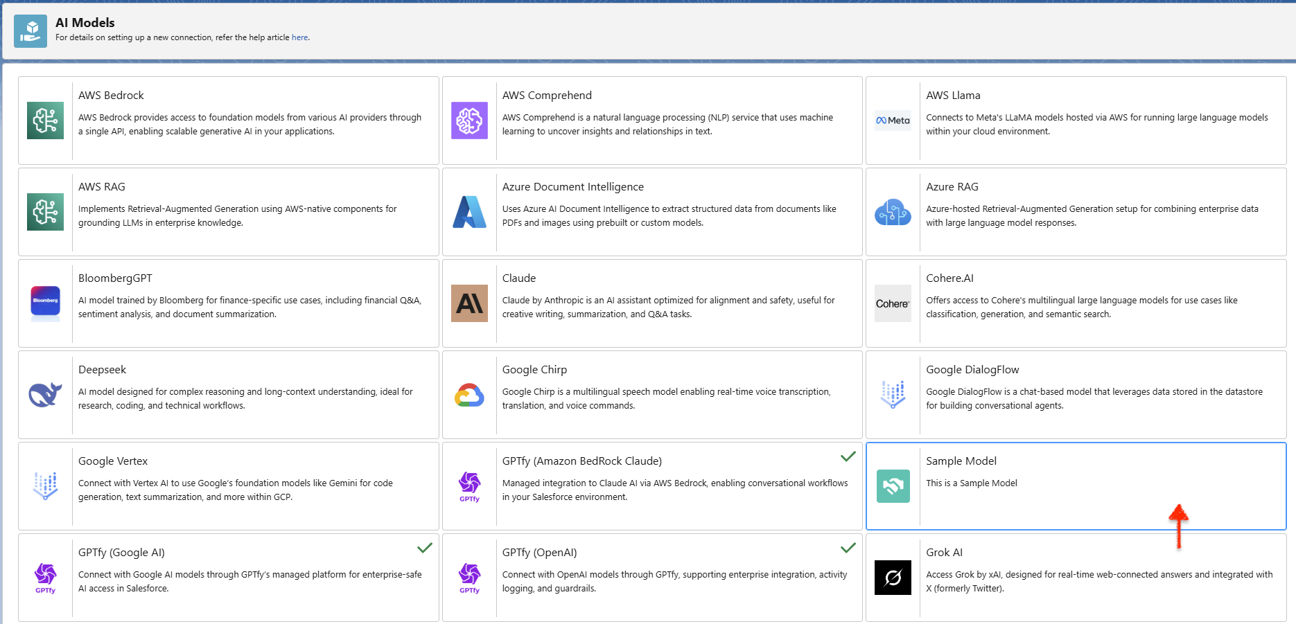 BYOM (Bring Your Own Model) is a GPTfy feature that lets your organization connect AI models of your choice either prepackaged options like Azure OpenAI, Amazon Bedrock, and Google Vertex, or custom models you’ve purchased or host internally—directly within Salesforce.