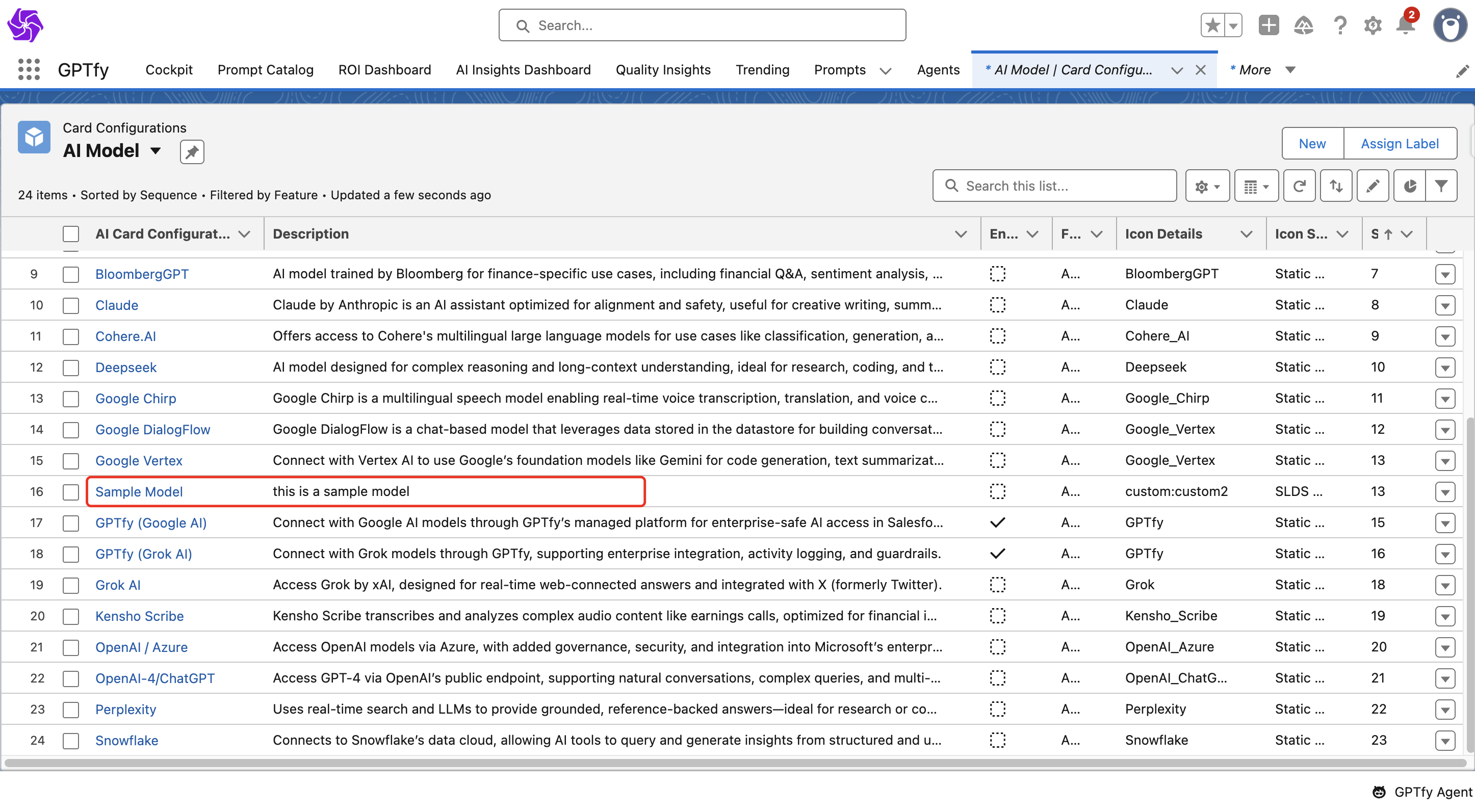 - The model will be marked as enabled in GPTfy Card Configurations.