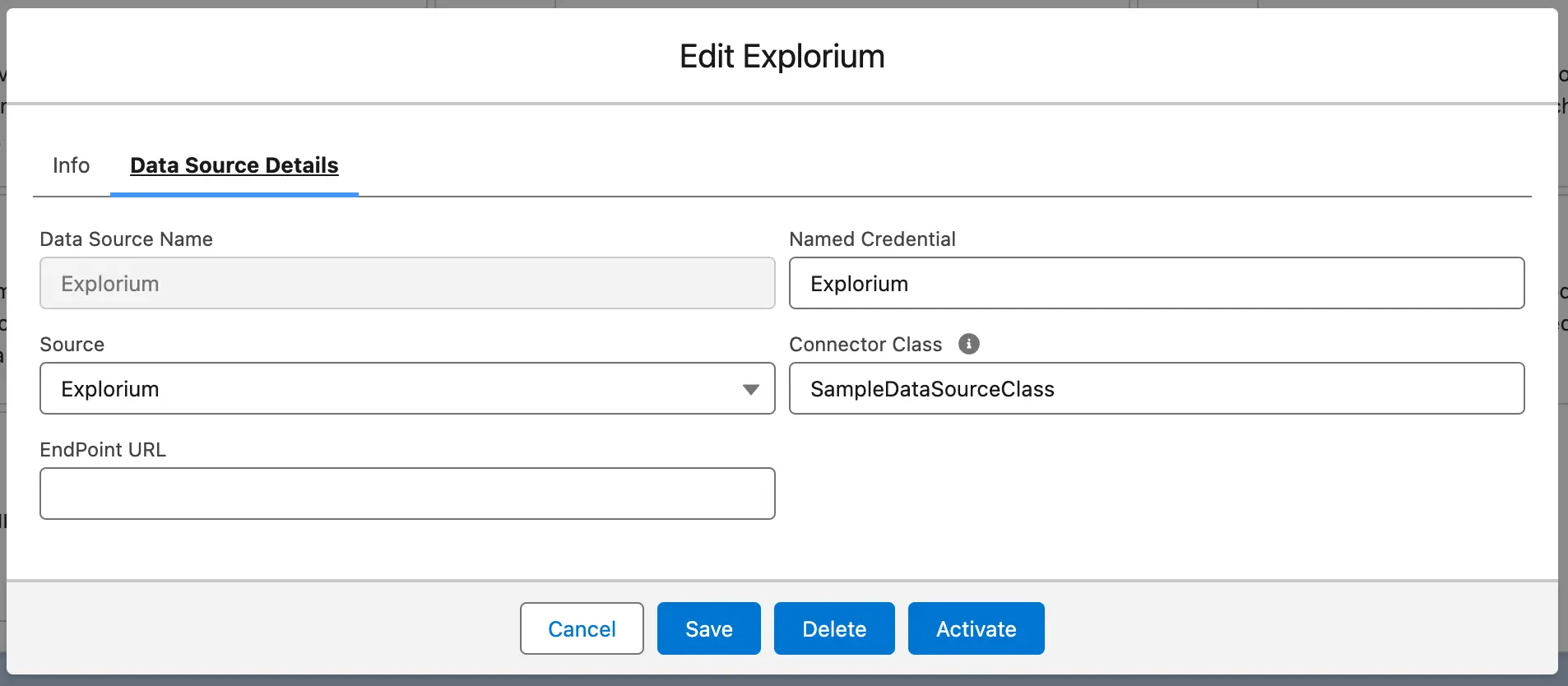 - An External Credential and Named Credential for the external API (e.g. Explorium)