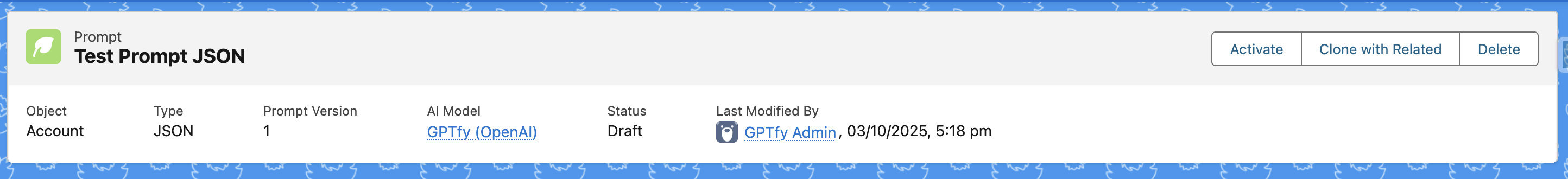 Creating prompts is at the core of using AI effectively in Salesforce. GPTfy offers a purpose built Prompt Builder that simplifies prompt creation, testing, and deployment—all in one structured interface. With intuitive controls, minimal clicks, and smart defaults, teams can quickly create, test, and deploy business-specific prompts that align with both operational needs and AI best practices.